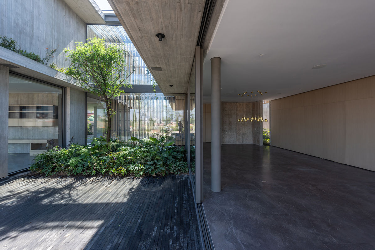 Benefiting from the sloping street surrounding the plot, this project integrates two houses. The main house, on the higher level, with an extense program for a family of six, and multiple weekly guests. The second one, on the lower end, under the garden, for the grandparents to spend festivities. Every space is surrounded by gardens and terraces, enjoying great views of the city and natural light and ventilation. The design is aligned with the energy criteria of the studio, harvesting and purifying rainwater , treating residues and generating energy with solar panels.